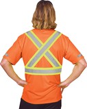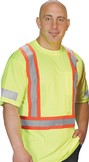 2" Vertical heat transferred tape on front and diagonal "X" pattern on back